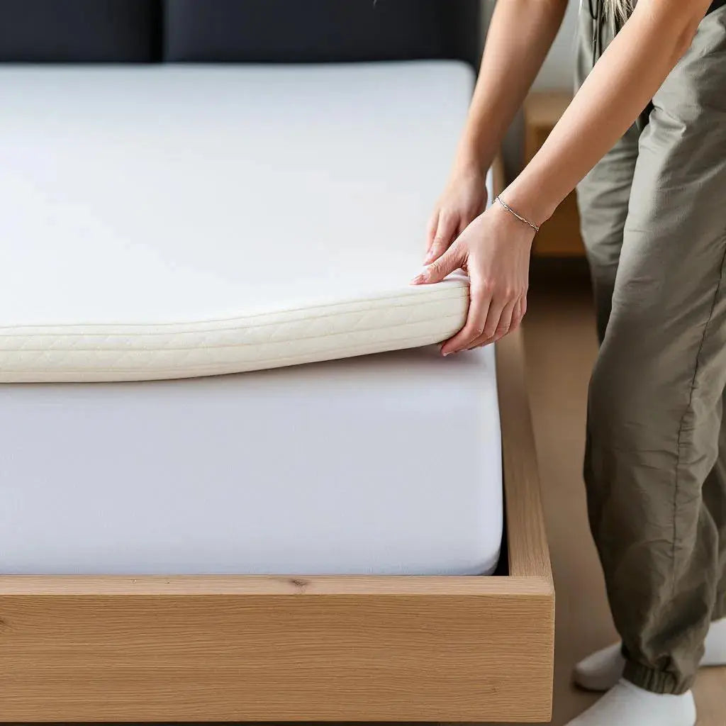 Der Topper ist mit einem Bezug aus Tencel oder einem PU-Bezug erhältlich, beide mit klimaregulierenden Eigenschaften. Der Tencel-Bezug ist besonders atmungsaktiv und feuchtigkeitsregulierend, während der PU-Bezug zusätzlich einen zuverlässigen Schutz bei Inkontinenz bietet.