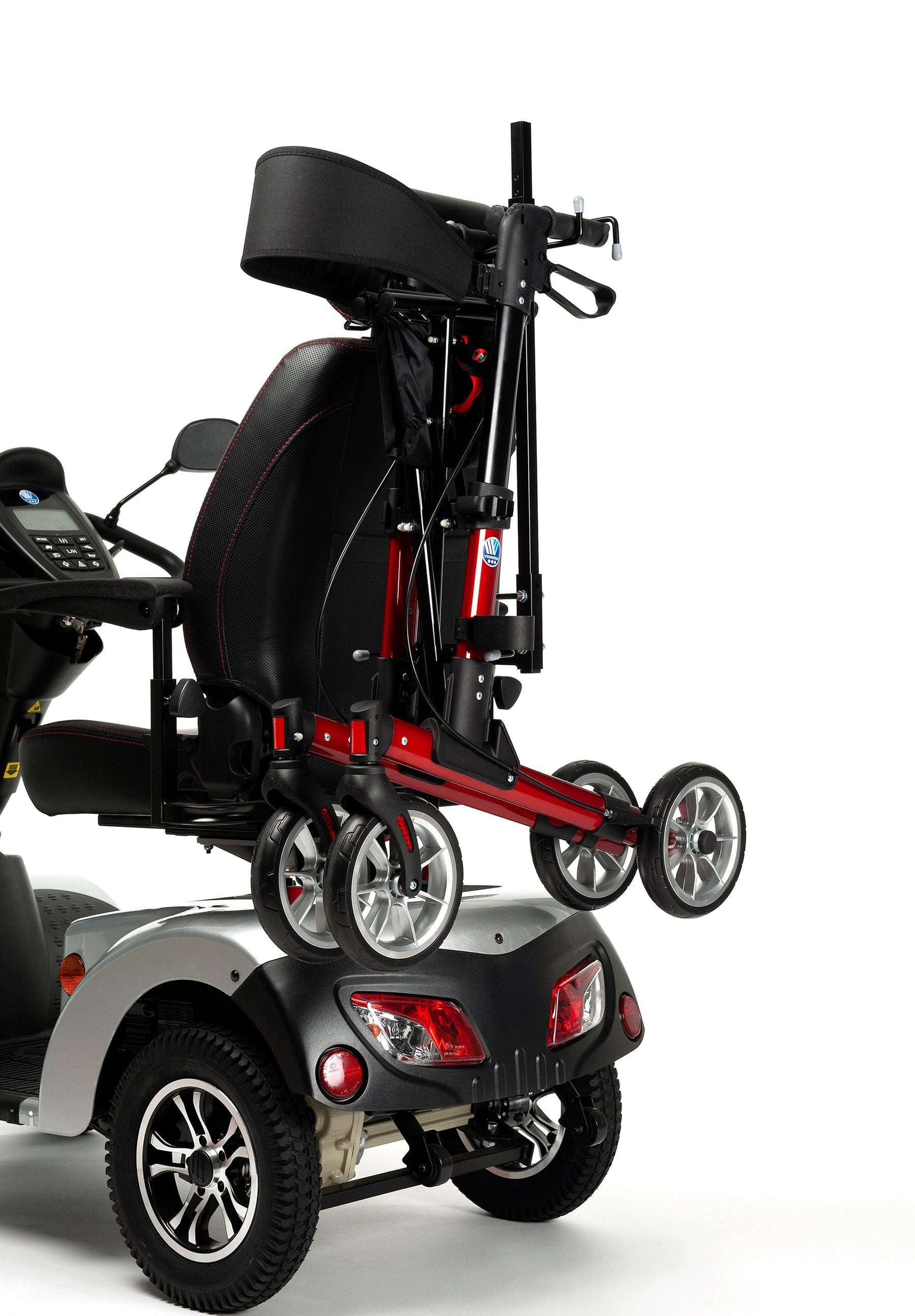 Der Rollatorhalter ist ein praktisches Zubehörteil für Elektromobile der Marke Vermeiren und ermöglicht den sicheren Transport eines Standardrollators während der Fahrt. Er wird stabil am Fahrzeug montiert und bietet eine komfortable Möglichkeit, den Rollator platzsparend und griffbereit mitzuführen. Dies unterstützt die Mobilität und Flexibilität des Nutzers auch bei längeren Ausfahrten. Weitere Details zu Montage und Handhabung sind im Katalog aufgeführt.