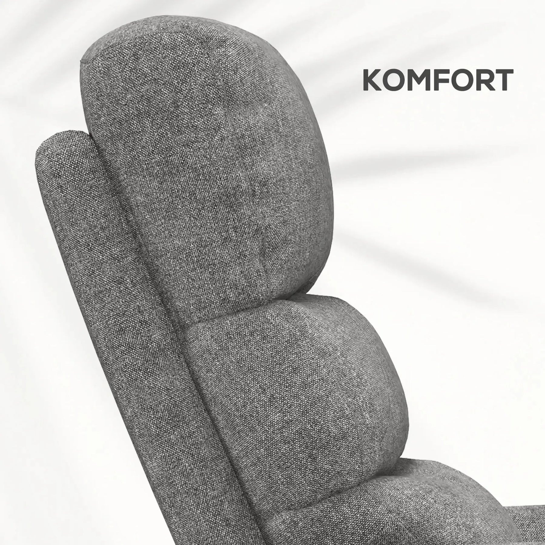 Weiche Polster, stützende Armlehnen und der angenehm texturierte Stoffbezug schaffen ein wohnliches Sitzgefühl. Das klare, moderne Design in Grau macht den Aufstehsessel Ferano zu einem eleganten Begleiter, der sich stilvoll in verschiedenste Einrichtungsstile integriert.