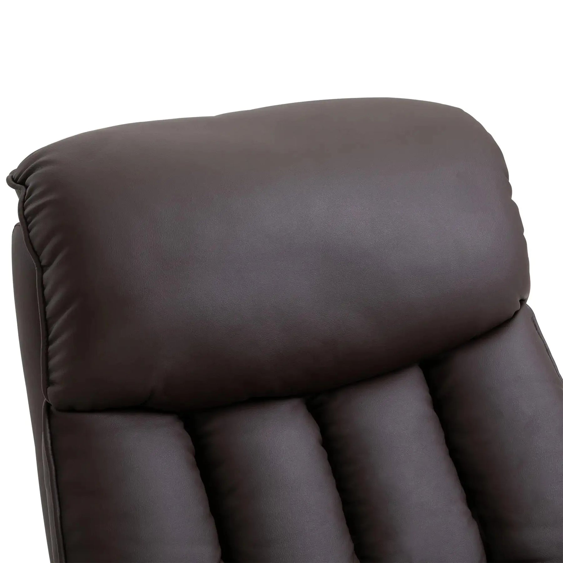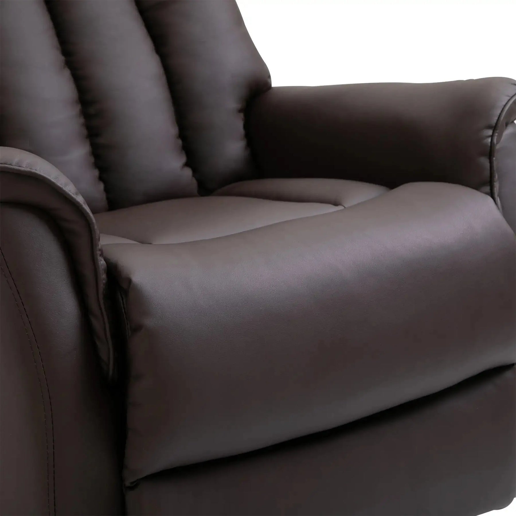 Der Bezug des Sessels ist aus pflegeleichtem Kunstleder in elegantem Braun – eine Kombination, die sowohl stilvoll als auch alltagstauglich ist. Der dicke Schaumstoff im Sitz- und Rückenbereich sorgt für hohe Sitzqualität, der Stahlrahmen gewährleistet Stabilität. Durch das moderne, zurückhaltende Design fügt sich der Sessel harmonisch in Wohnräume ein, ohne optisch aufdringlich zu wirken. Die Materialwahl vermeidet aufwändige Pflege wie Ölen oder Wachsen und ist daher besonders praktisch.